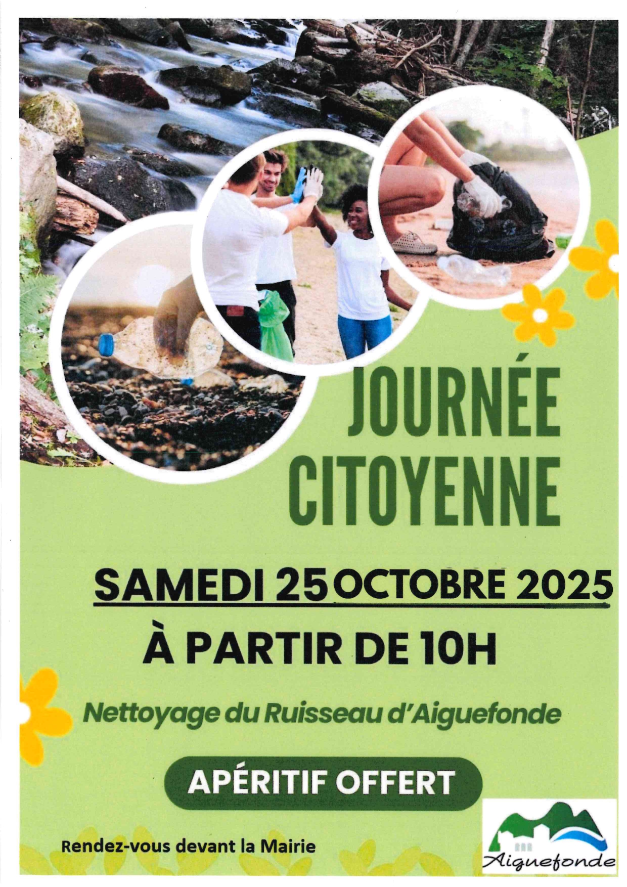 Nettoyage du ruisseau d'Aiguefonde le 25/10 à partir de 10h. Rendez-vous devant la Mairie. Lire la suite