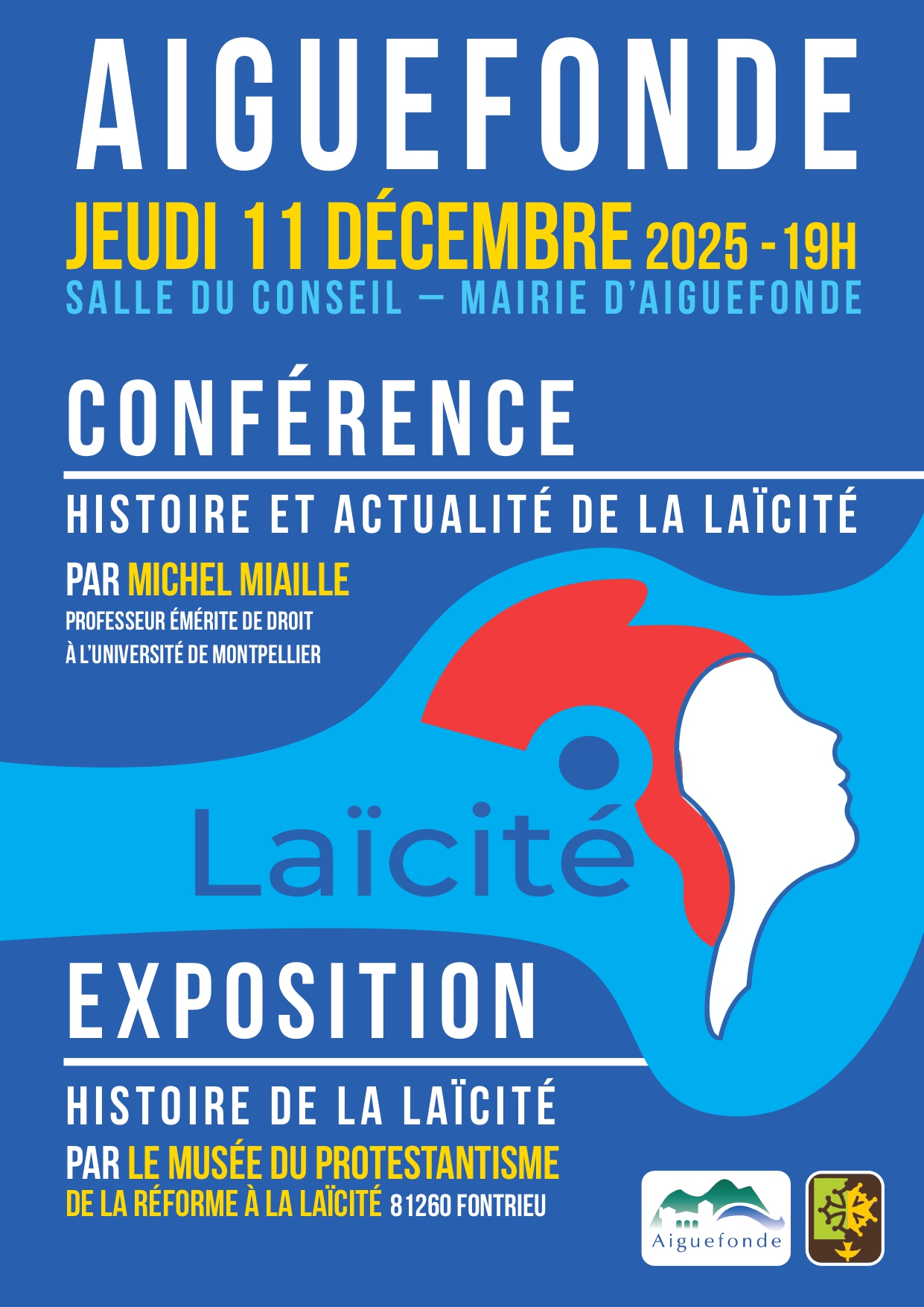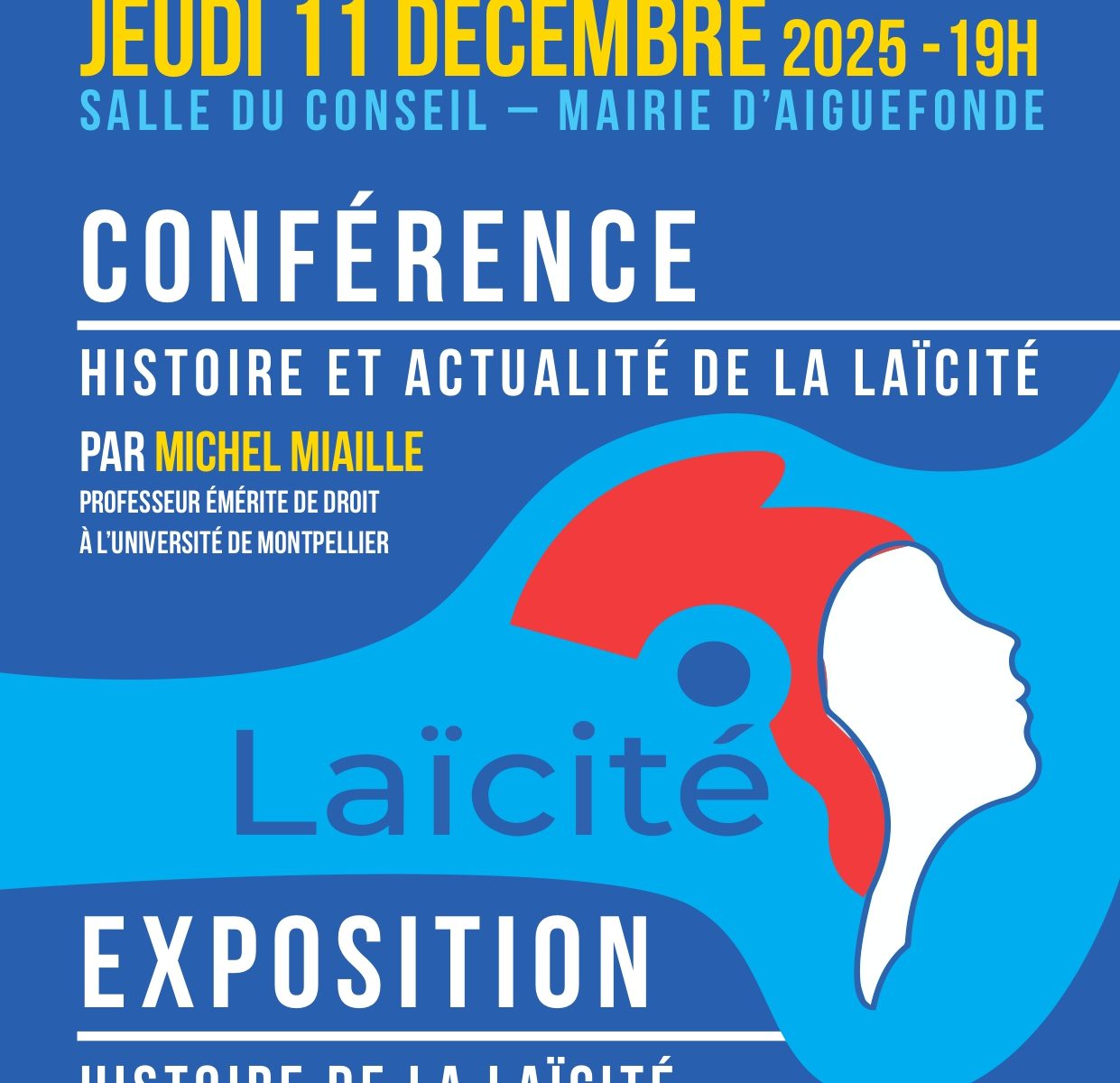 Jeudi 11 décembre à 19h, salle du Conseil Municipal - Mairie. Conférence dans le cadre des 120 ans du vote de la loi de 1905 sur la laïcité. La commune accueille aussi l'exposition "Histoire de la laïcité" du Musée du Protestantisme de la réforme à la laïcité de Ferrières Lire la suite